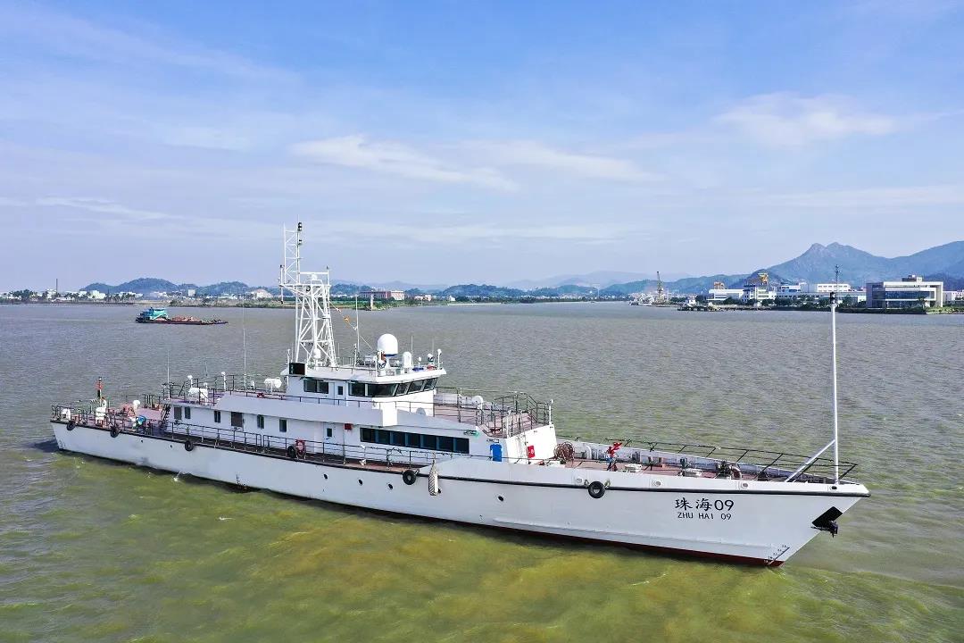 “珠海09”是珠海市交通运输局的陆岛海域交通应急和海洋执法船,该船由广州船舶及海洋工程设计研究院设计,CCS检验,总长55米,型宽7.6米,采用钢铝结构、三机三桨驱动、设计航速28节,试航实测最大航速29.5节,自重350吨,可抗8级大风,是目前珠海市最大吨位的交通应急执法船,未来将主要承担珠海市管辖海域巡逻执勤、治安维护、指挥、应急处置等任务。