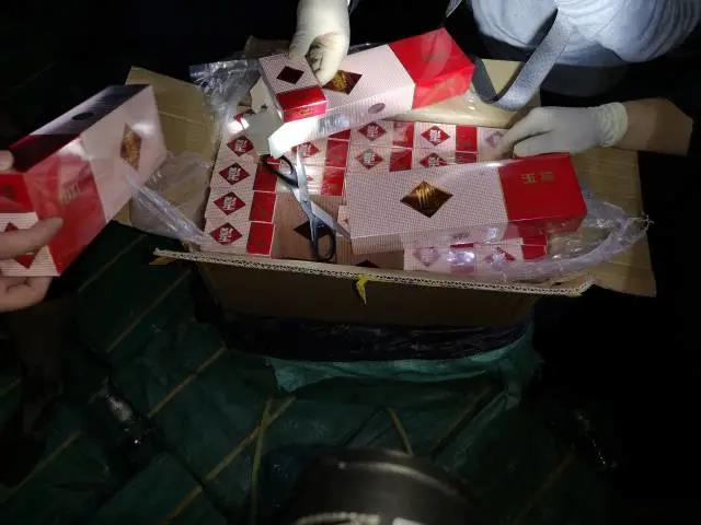 12月10日,联合侦查组获悉该走私团伙将派铁壳船到外海对接母船(俗称中巴),从“中巴”上装载境外走私入境的香烟,并密谋在11日夜间,趁涨潮之机将铁壳船停靠到金湾区沙利咀一带海域,而后由货柜车卸货运离。